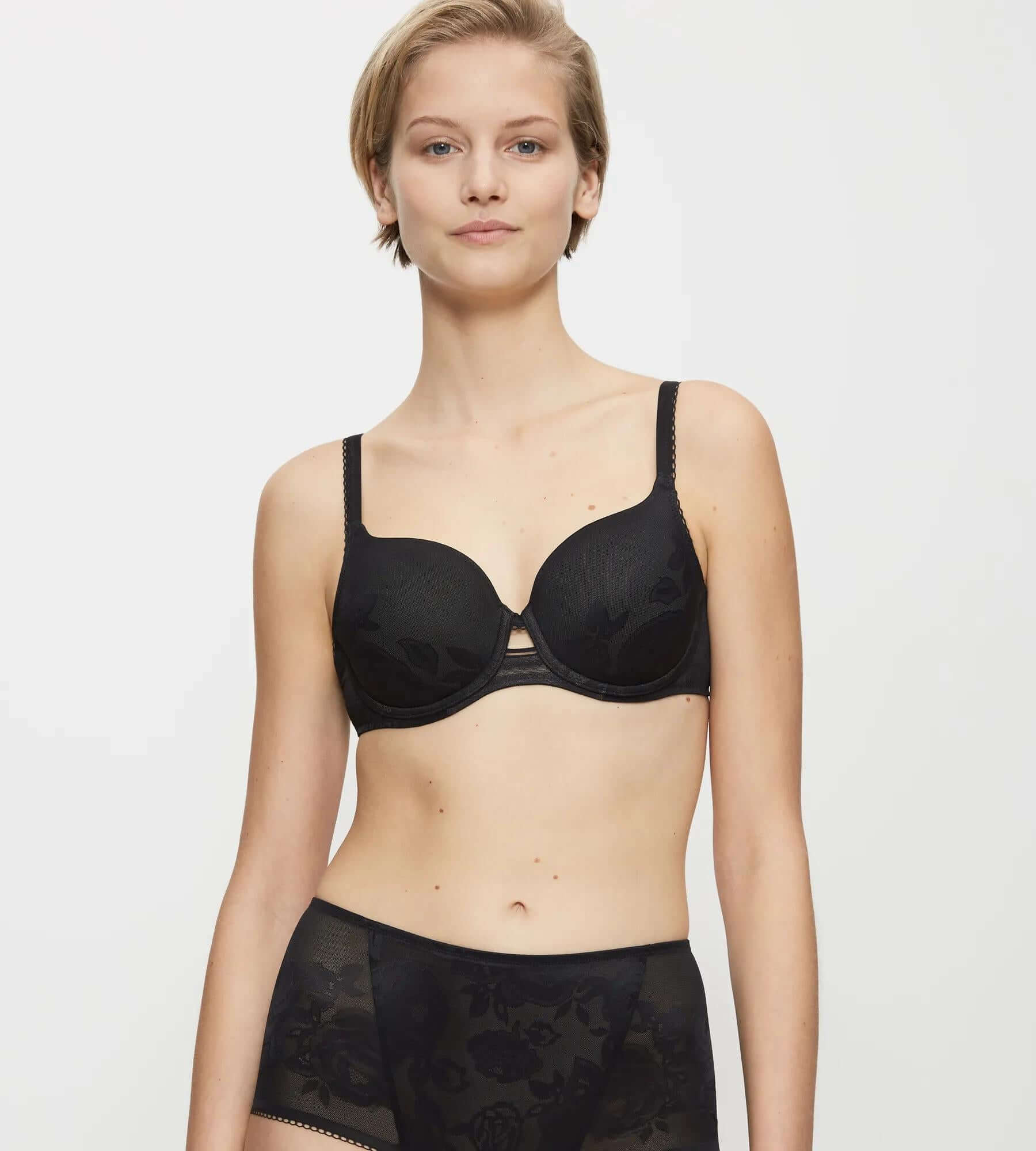 This bra from the Shape Wild Rose Sensation lingerie line by Triumph has high-quality Spacer Cups and medium shaping lace that create a flawless silhouette and naturally stunning cleavage.